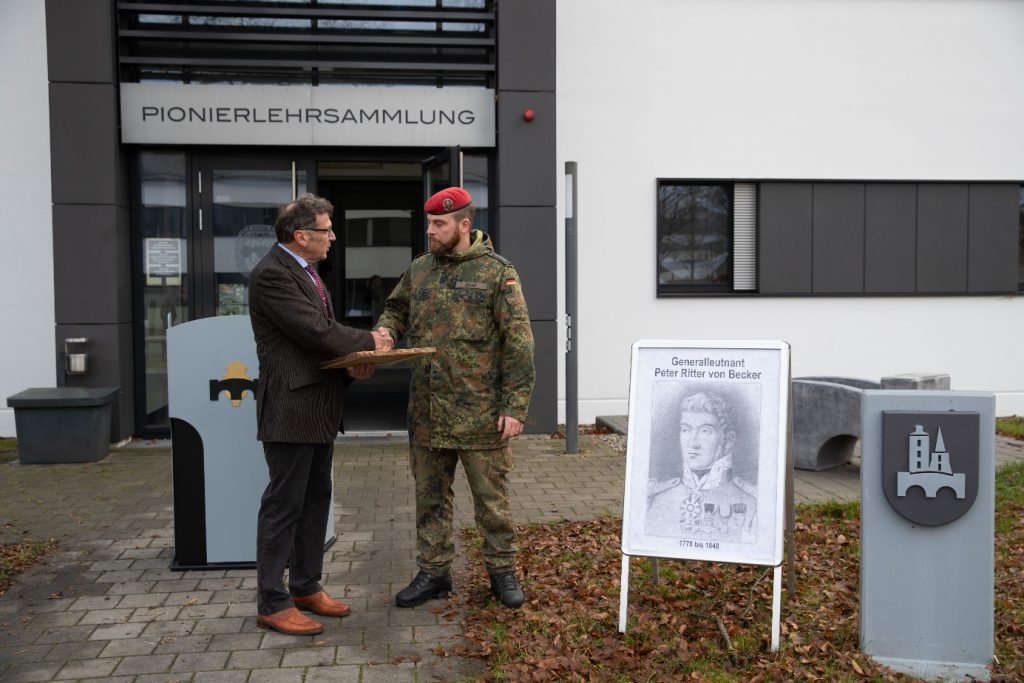 In seiner Ansprache ging der Vorsitzende des Bund deutscher Pioniere Oberst a.D. Lindner, kurz auf die historische Bedeutung des Namensgebers, des gestifteten Preises, Generalleutnant Peter Ritter von Becker ein, bevor er die Karriere des Preisträgers skizzierte.